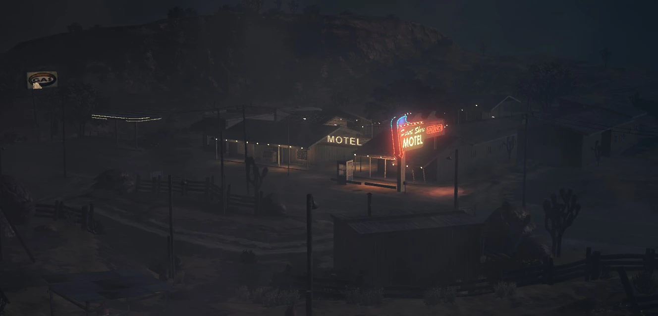 Motel Desert Shore stanowi jeden z głównych obszarów, jakie odwiedza sławny pisarz. W jego obrębie, poza pokojami mieszkalnymi znajduje się warsztat Emmy Sloan, stacja benzynowa oraz restauracja.