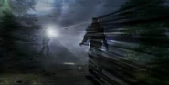 These Taken were introduced in Alan Wake 2. They will attempt to attack from a distance by throwing axes at Saga, and are capable of rapidly teleporting short distances away to stay out of the player's sightline. When weakened by a flashlight, Throwers can duplicate themselves into two weaker copies.