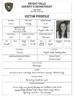 Before 2010, Wendy Davis was employed as a kindergarten teacher at Bright Falls Kindergarten. In 2010, Wendy disappeared. According to Wendy's husband Gil, his wife was not at home when he returned from work. The following information is taken from Wendy's MISSING poster: